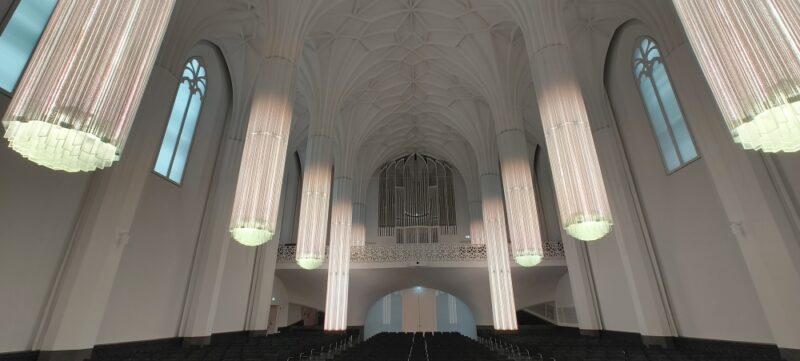 Judu link architektūros portaluose nuskambėjusį Paulinum [Paulinum – Aula und Universitätskirche St. Pauli] Tai 2017 m. pabaigoje užbaigtas unikalus pastatas Leipcigo centre, sujungiantis universiteto aulą ir bažnyčią po vienu stogu. Pastatas iškilo tiksliai toje pačioje vietoje, kur stovėjo 13-ojo amžiaus Šv. Pauliaus bažnyčia. Nors ši bažnyčia beveik nenukentėjo per Antrąjį pasaulinį karą, 1968 m. gegužės 30 d. ją susprogdino komunistinis VDR režimas, siekdamas išvalyti vietą moderniam socialistiniam universitetui. Atstatymo projektą sukūrė olandų architektas Erick van Egeraat. Pastato fasadas savo gotikinėmis formomis ir smaile primena tikrą senąją bažnyčią, tačiau realizacijoje panaudojo šiuolaikines medžiagas, kaip stiklas ir šviesus akmuo. Viduje erdvė yra padalinta į dvi dalis: aulą, skirtą akademinėms iškilmėms, konferencijoms bei koncertams, ir už stiklinės pertvaros – maldos erdvę [bažnyčią]. Bažnyčios dalyje buvo sumontuoti istoriniai epitafai ir altorius, kurie buvo spėti išgelbėti prieš 1968 m. sprogdinimą. Statybos truko dešimtmetį ir, kaip visada, kainavo gerokai daugiau nei planuota, tačiau yra vienas ryškiausių ir įdomiausių moderniosios architektūros ir senosios interpretacijos objektų.