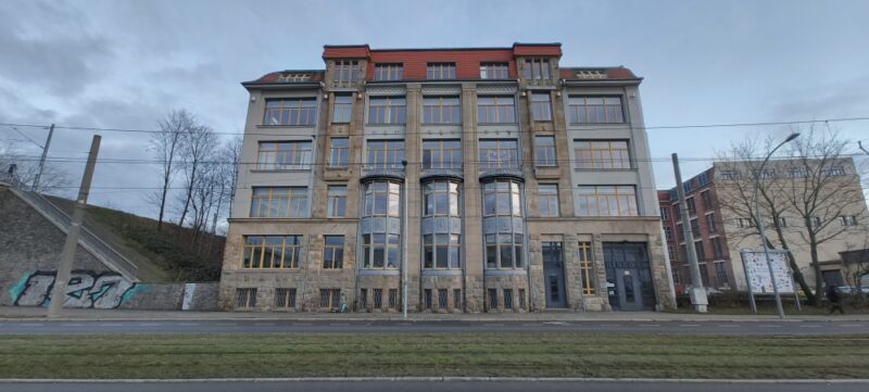 Kolegėms Justinai ir Lukrecijai nusprendus eiti į viešbutį ir ruoštis uždarymo vakarienei, aš dar nupėdinau iki industrinio kvartalo Wirkbau. Wirkbau nėra atskiras administracinis rajonas, labiau įspūdingas istorinis industrinis kompleksas, nesenai tapęs vienu ryškiausių sėkmingos senųjų gamyklų transformacijos pavyzdžių Vokietijoje. 1883 m. čia buvo paklotas pamatas didžiausiai Vokietijos tekstilės mašinų gamyklai (Schubert & Salzer). Jos simbolis – 63 metrų aukščio Art Deco stiliaus laikrodžio bokštas su varpine, pastatytas 1927 m., kuris iki šiol matomas miesto panoramoje ir traukia akį. Šiandien „Wirkbau“ yra gyvas kūrybos ir verslo centras – čia veikia apie 50 įmonių, švietimo įstaigų, meno galerijų ir paslaugų teikėjų, kuriuose dirba virš 1400 žmonių. Archdaily rašo, kad ant vieno stogo yra įrengtas 1500 m² ploto žaliuojantis sodas, kuris prieinamas visai bendruomenei poilsiui ar renginiams. Aš nepatekau, bet patikėjau, kad yra ir kad gražu [google – Wirkbau Chemnitz Roof Garden / Meyer-Grohbrügge].